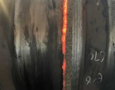 层状偏析。从焊缝的断面金相分析,难于形成温度梯度形态依次转向均匀,凝固时不均匀,可以观察到熔池在凝固过程中晶体长大速率有周期性的变化,这与结晶时熔质浓度及其温度的周期性变化等相关,因而形成化学成分不均匀的分层组织,如图所示为采用放射性 同位素(S35)实验的照片。硫化物成链状分布,其层状线为硫化物凝固偏析的痕迹。层状涓析造成焊缝化学成分及其组织和力学性能的不均匀性,同时会沿层状组织造成有害溶质,二氢及杂质的聚集而产生脆性带及其裂纹,气孔和夹杂等缺陷。