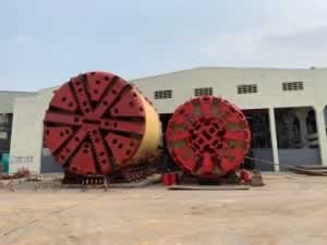 盾构机刀盘:位于盾构机的最前端,用于切削土体,刀盘上根据切削土质的不同安装硬岩刀具或软土刀具,刀具和刀盘由螺栓连接,刀具可以在刀盘后面的泥土仓中进行更换。 刀盘上的切割刀头是主要部件,通过旋转完成切削,刀头因切削的介质不同分为岩土刀头和软土刀头。可以使用我们的LQ556,LQ582等耐磨焊丝进行堆焊。